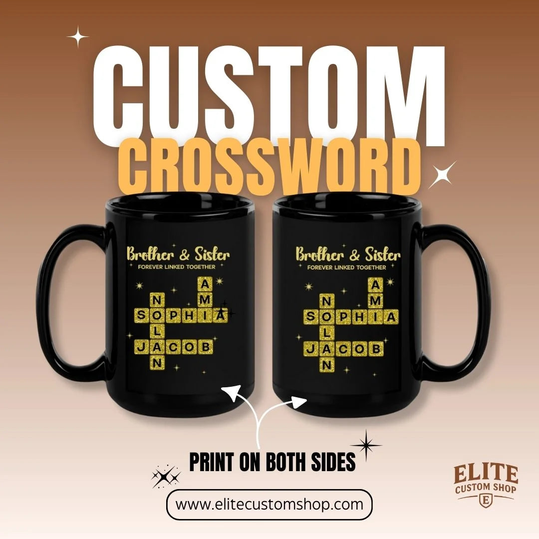 Personalised Brother and Sister Name Mug Scrabble Crossword Gift