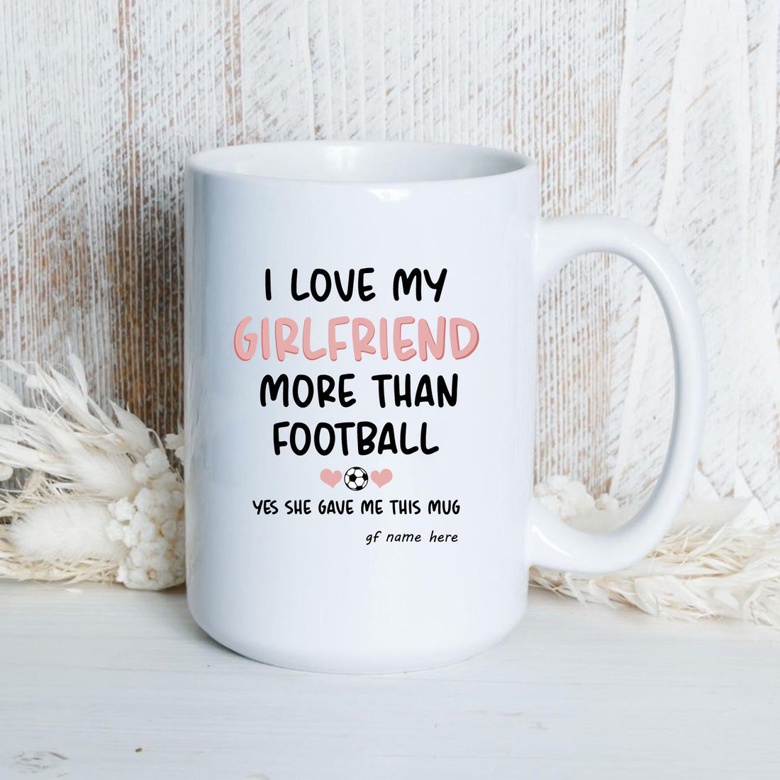 Personalised I Love My Girlfriend More Than Football Mug Printed on Both Sides