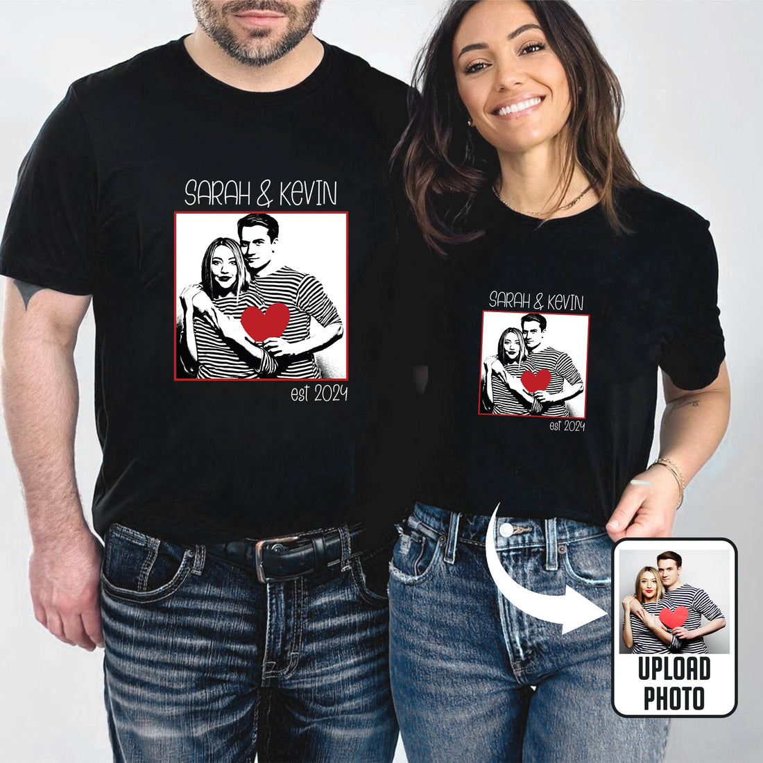 Couple Picture Matching, Anniversary Gift, Valentine's Day Gifts - Personalized Photo Comfort Tee