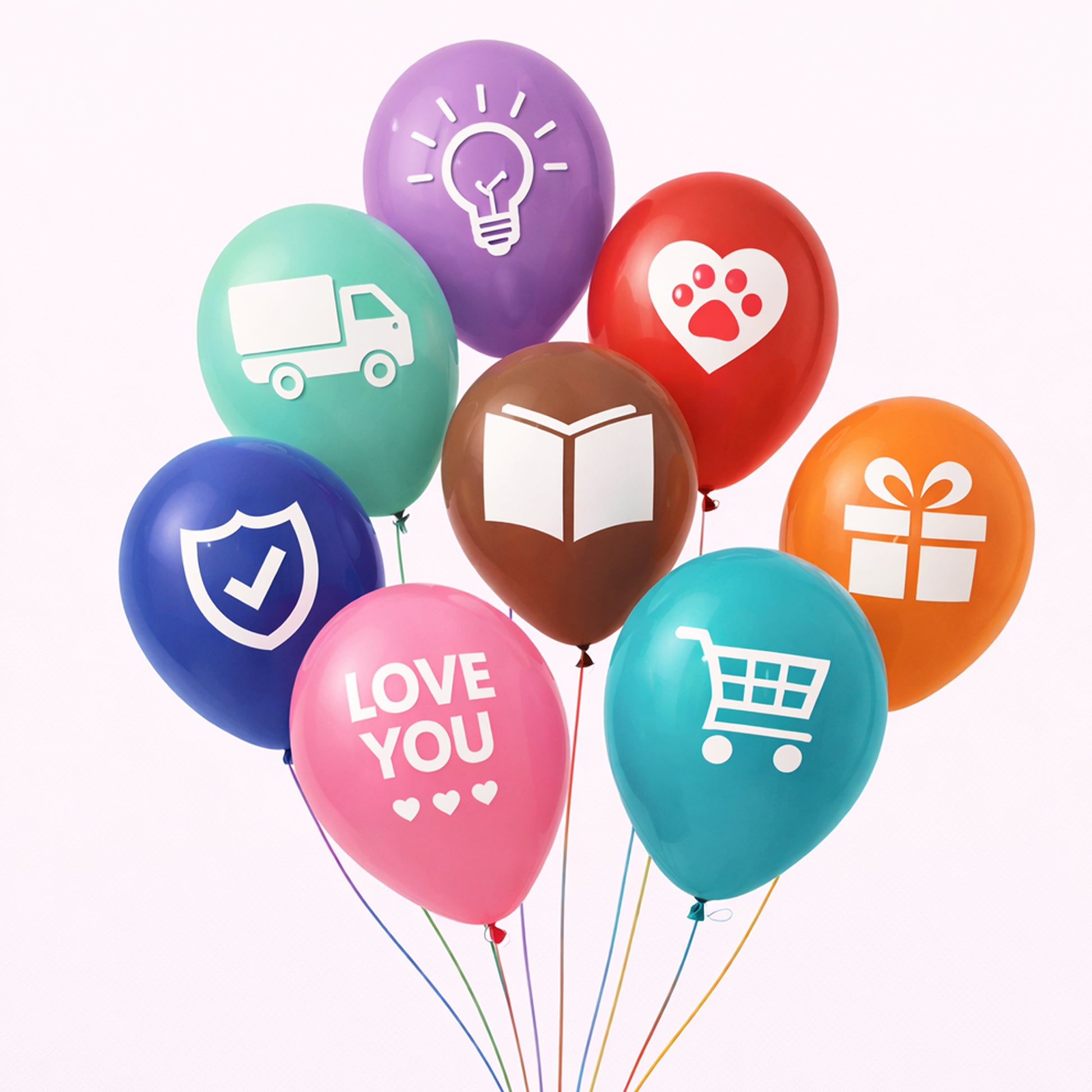 Choose from 15+ vibrant balloon colors and multiple size options. We can print any single-color design, including logos, names, dates, or custom artwork—perfect for anyone needing high-quality custom printed balloons that stand out.