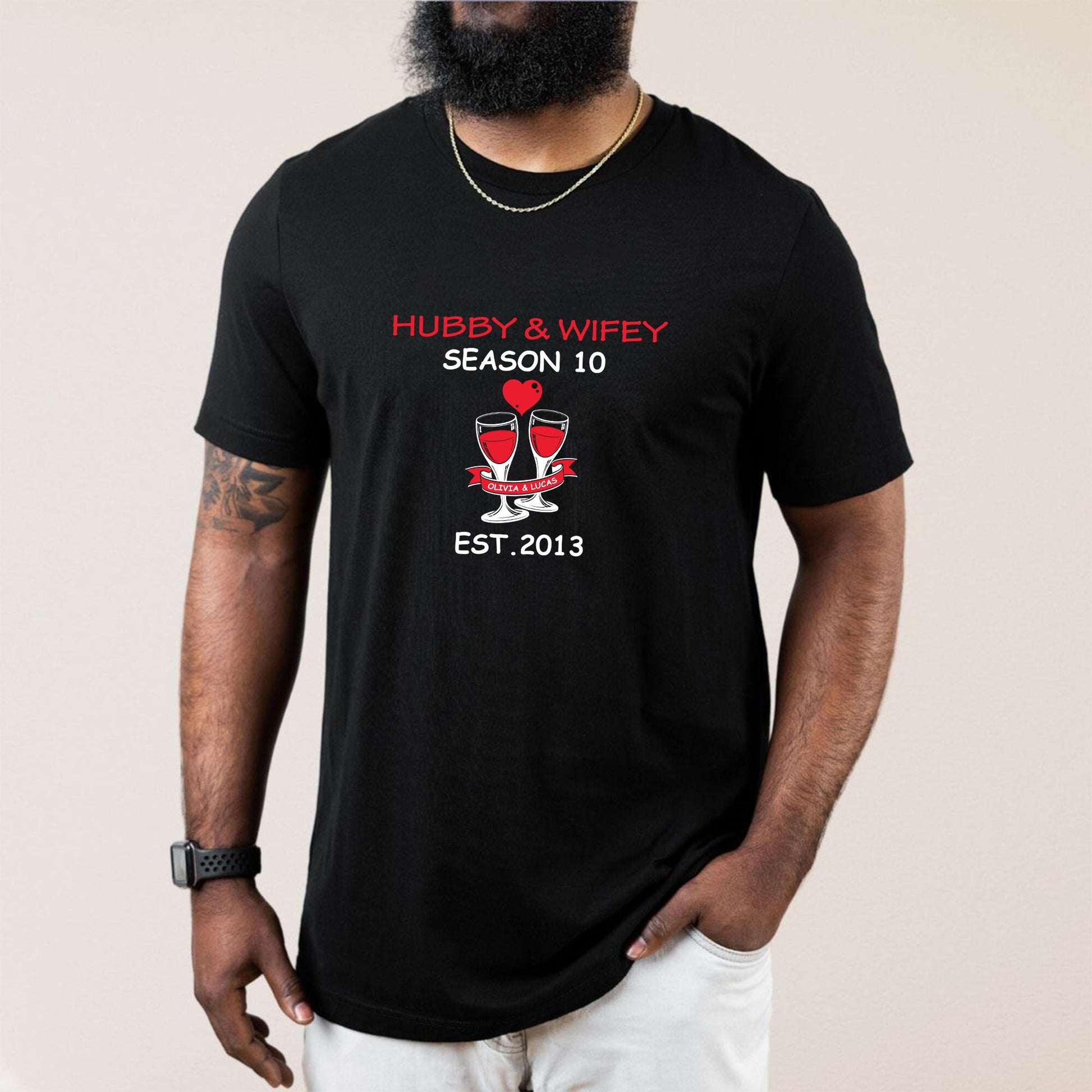 Make every moment unforgettable with our Personalised Custom Matching Couple Shirts-Hubby & Wifey, custom-printed with your most treasured photos. This unique and stylish tee lets you celebrate your love story, special memories, or favourite couple pics in a fun and meaningful way.
